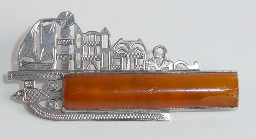 Art Deco Brosche aus Russland. 800er Silber mit Bernstein, um 1910.