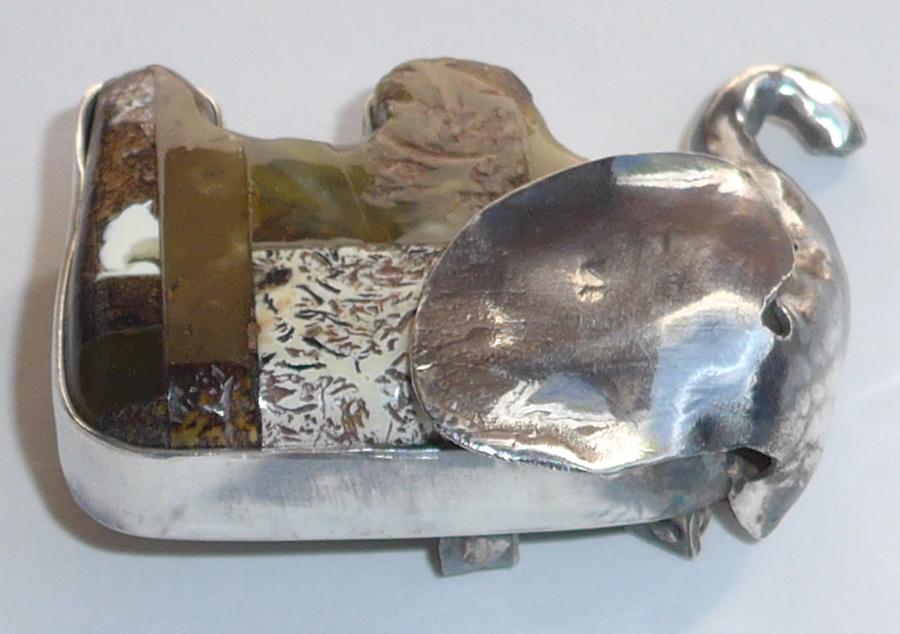 Bernstein-Elefant, Anhänger & Brosche in einem.Ein vielseitiges, durchdachtes Schmuckstück, zeitlos designet. Ein echter Blickfang. Dieser kunstvoll gearbeitete Elefant besteht aus grün schimmerndem Naturbernstein mit charakteristischen Fragmenteinschlüssen. Jeder Stein ein Unikat mit urzeitlicher Geschichte. Die detailreiche Fassung ermöglicht es, das Schmuckstück wahlweise als eleganten Anhänger oder als stilvolle Brosche zu tragen. Dr Elefant steht als Sinnbild für Weisheit, Stärke und Glück. Kombiniert mit der warmen Energie des Bernsteins entsteht ein besonderes Accessoire mit Bedeutung und Stil. Maße: 4,45 cm x 3.30 cm x 1,50 cm. Gewicht: 23,20 Gramm. |