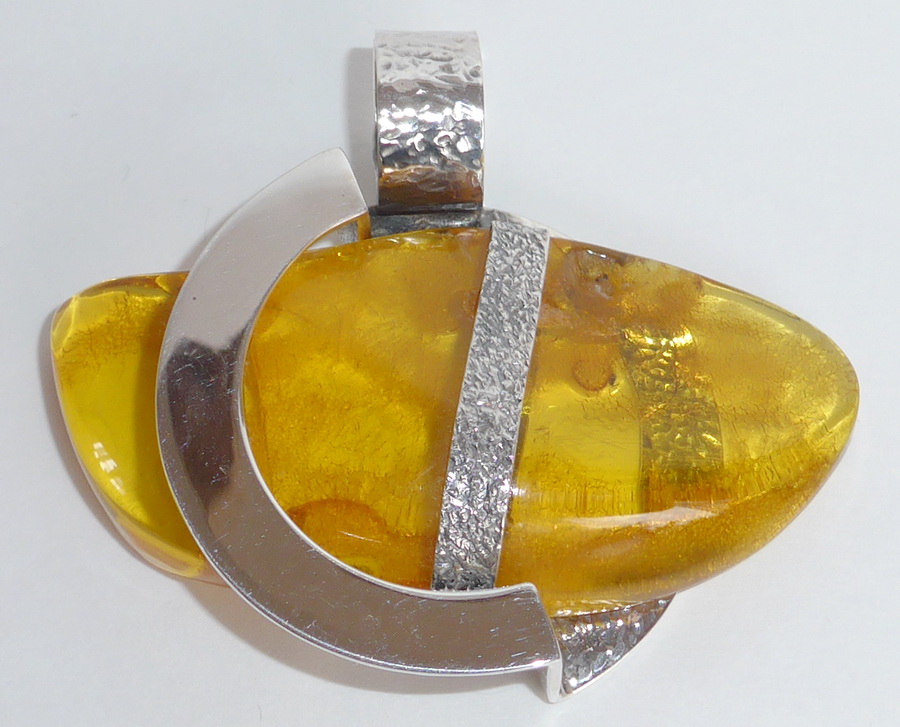 Raffinierter, honig farbener Bernstein Anhänger. Tauchen Sie ein in die Schönheit der Natur mit diesem schönen Bernsteinanhähnger, der durch sein einzigartiges Design die elegante Anmut eines Fisches aufgreift. Im Zentrum des Anhängers strahlt ein klarer honig farbener Bernstein, warm, lebendig und voller natürlicher Tiefe. Der in 925er Silber gefasste Stein ist kunstvoll umrahmt. Die Silberlinien formen eine stilisierte Fischsilhouette, die dem Anhänger eine maritime Leichtigkeit und symbolische Bedeutung verleiht. Maße (ohne Öse): 6,00 cm x 4,20 cm x 1,30 cm. Gewicht: 28,40 Gramm. |