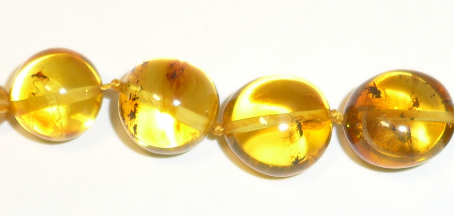 Fantastische, honig farbene Bernstein Inklusen Halskette.Wunderschöne, honig farbene Inklusen-Bernsteine wurden zu Barockkugeln geschliffen und auf hochglanz poliert. In jeder Bernsteinkugel befindet sich eine Insekteninkluse. Länge: 51 cm. Gewicht: 48,50 Gramm. Durchmesser/ Barockkugel: von 1,10 cm bis 1,60 cm. |