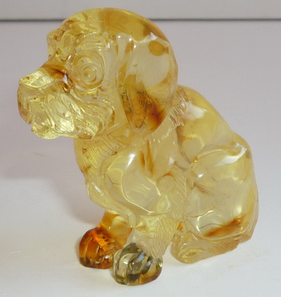 Bernstein Hund. Maße: L: 6,00 cm x H: 3,40 cm x B: 2,60 cm. Gewicht: 15,80 Gramm. Filigrane Handarbeit! Weitere Details, bitte hier ! |