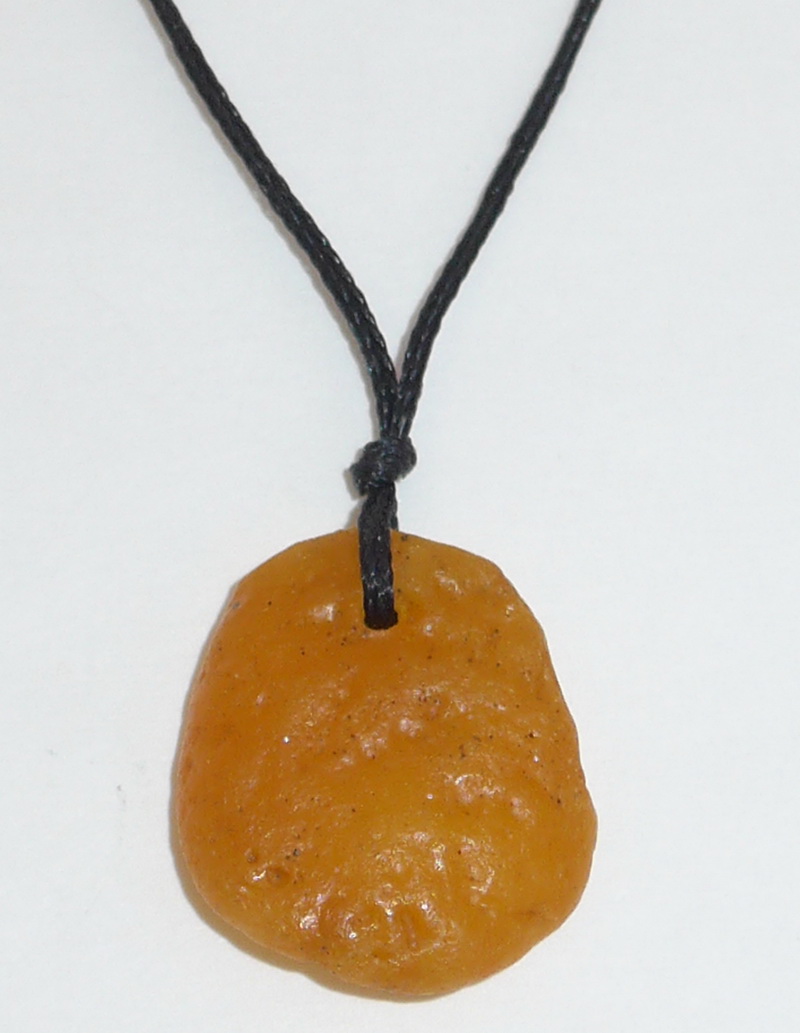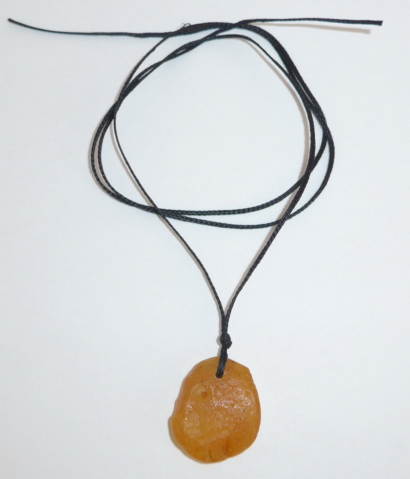 Kleiner Seebernstein, am Stoffband. Dieser Bernstein aus der Ostsee wurde so belassen, wie er gefunden wurde. Größe: L: 2,3 cm x B: 1,9 cm x D: 0,6 cm. Gewicht: 2,10 Gramm. |